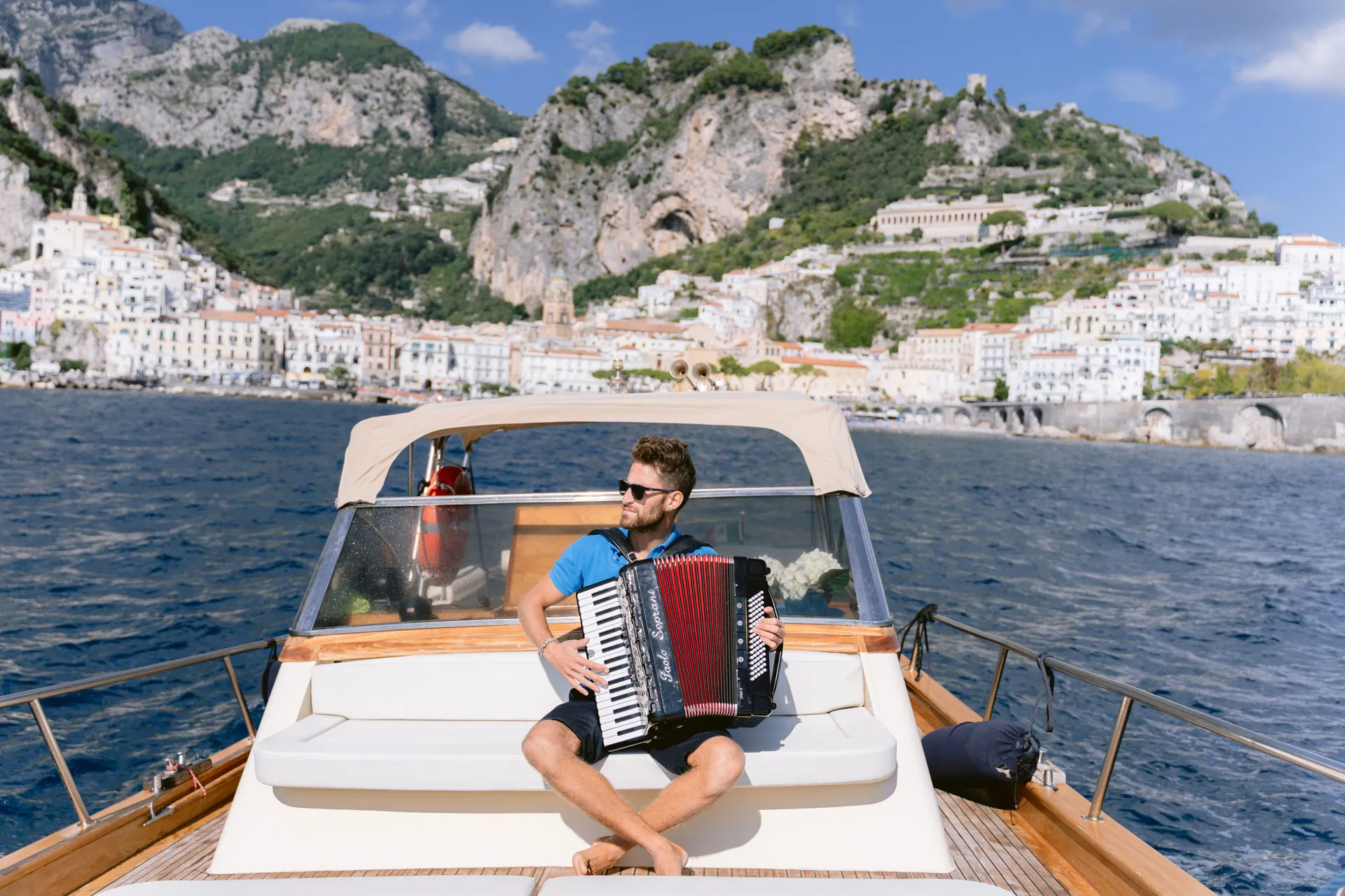 La musica è una compagna di viaggio. A bordo della mia “Victoria”, non suono per intrattenere i miei ospiti, suono per condividere un’emozione, per raccontare Amalfi senza parole. E non manca mai un buon motivo per brindare.